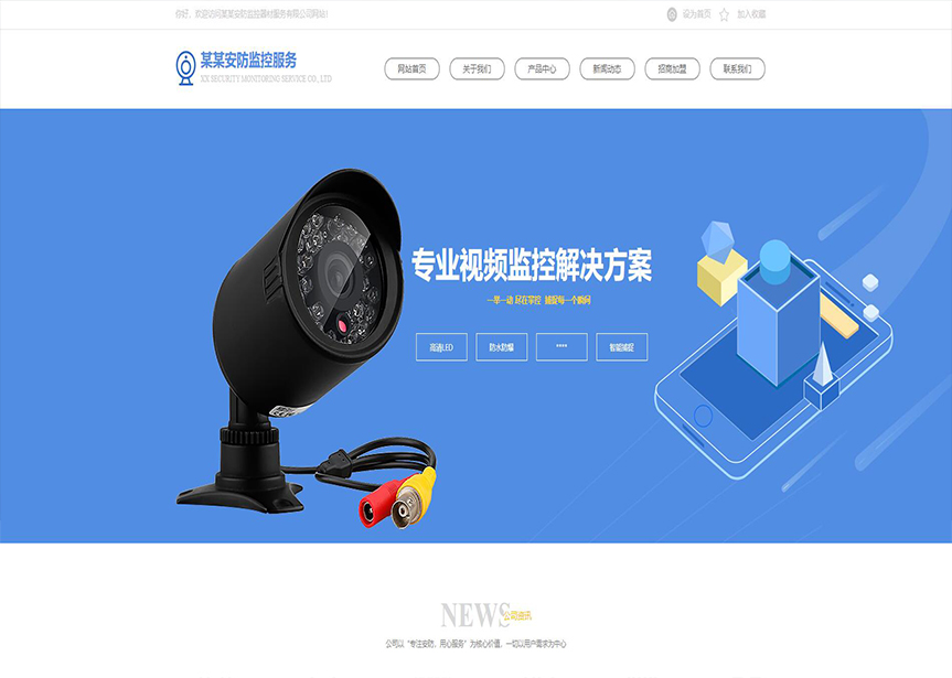 首頁 / 安防、監控器材 / (帶手機版數據同步)自適應安防監控器材類藍色網站模板