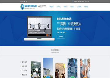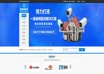 (帶手機版數據同步)自適應安防監控器材類藍色網站模板